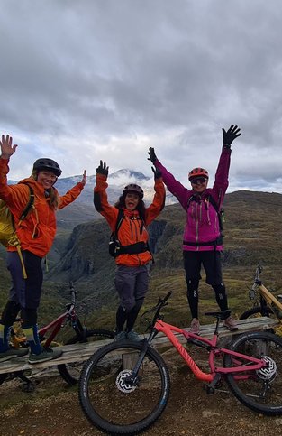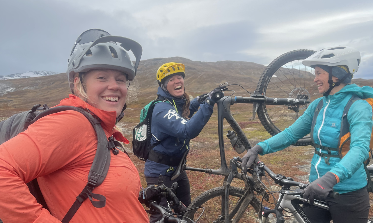 It is nicer and easier if you have cycled a bit before. It is hilly with both stones, roots and branches. We will also occasionally push the bike uphill, but don’t let the height differences put you off. We take well-deserved breaks, eat nuts, chocolate and enjoy the mountain view and the community.